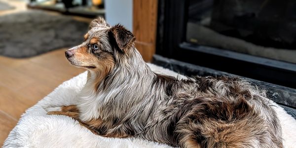 Tater is a two-year-old red merle male with minimal white, dual registered with AKC and ASDR. He was born and raised on a large cattle ranch in Arizona, where he gained early exposure to working cattle. While ranch work was not his primary calling, this foundation contributed to his strong nerve, adaptability, and sound temperament. Tater has since transitioned seamlessly to city life, where he continues to thrive.